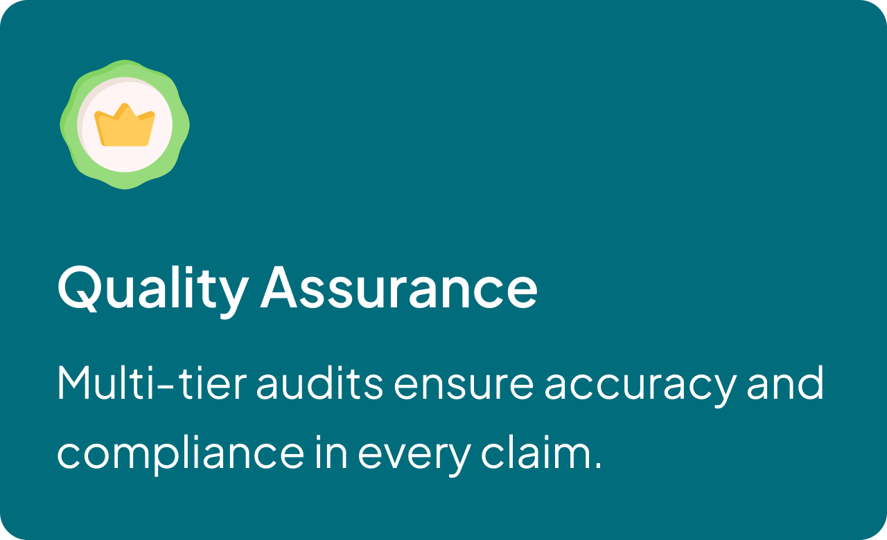 Quality is at the heart of our process. Our QA team consistently maintains a 97.5%+ accuracy level through audits, dual checks, and 3-tier reviews to maintain compliance and coding excellence.